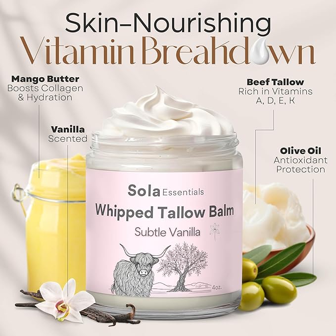 - Whipped & Deeply Moisturizing - Our beef tallow moisturizer is luxuriously whipped for a smooth, fluffy texture that glides effortlessly onto the skin. It absorbs quickly, delivering intense hydration without a greasy feel. Perfect for nourishing dry or sensitive skin!