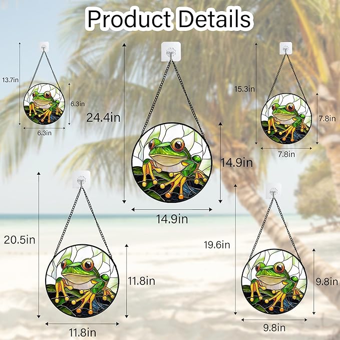 Stained Glass Window Hanging, Green Frog White Petals Sun Catchers Colorful Glass Panel Cute Suncatcher Decor for Birthday for Women, Men, Wife, Aunt, and Mom 14.9x14.9 in