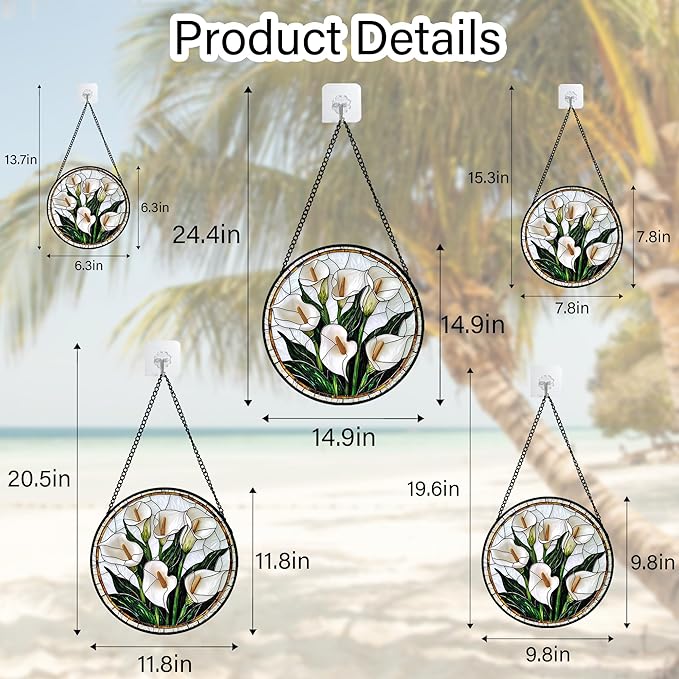 Stained Glass Window Hanging, White Calla Lily Flowers Sun Catchers Glass Panel Plant Suncatcher Decor for Birthday for Women, Men, Wife, Aunt, and Mom 14.9x14.9 in