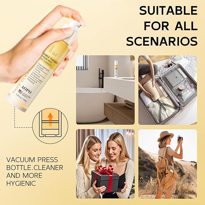 - 【Gentle & Natural Formula for Sensitive Skin】Experience irritation-free cleansing with Turmeric & Kojic Acid's natural brightening power. Our pH-balanced exfoliating foaming face wash gently melts away impurities while soothing redness-prone complexions, perfect for sensitive skin.