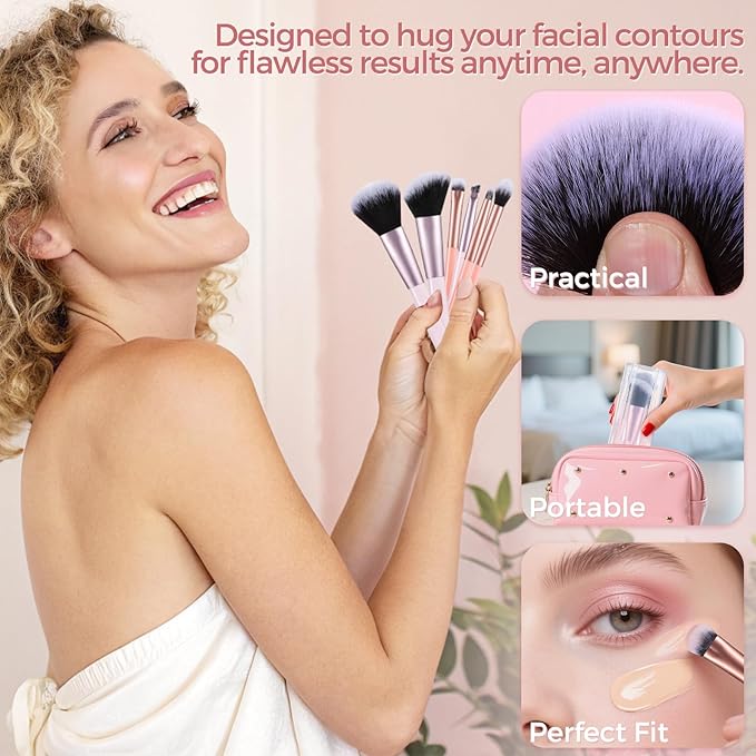 - Perfect gift: The travel makeup brush set is a perfect gift for those who love makeup or just learning and trying makeup. Creates a flawless makeup effect, convenient for daily makeup or travel.