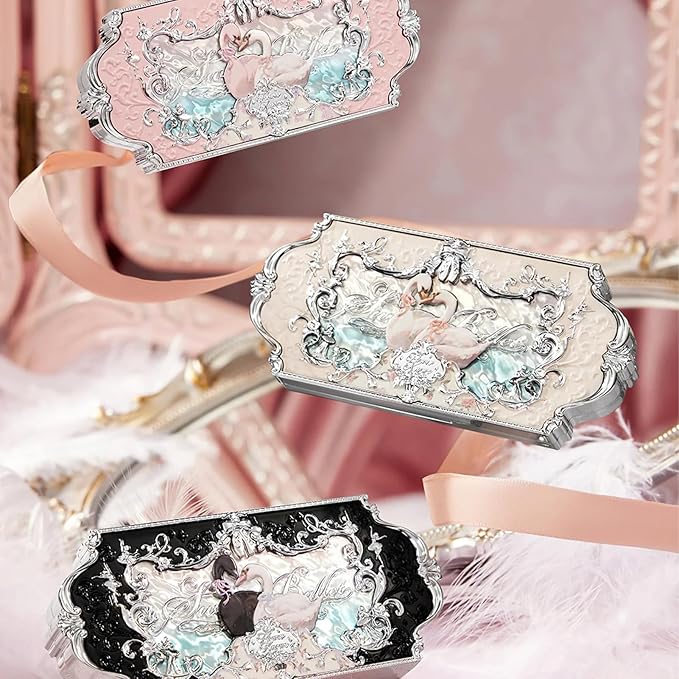 - Portable Travel-Size: Ballet-inspired case with silver detailing,engravings of ballet skirts/slippers,water ripple & oil-painted swan accents + full mirror.Compact,lightweight case for on-the-go glam