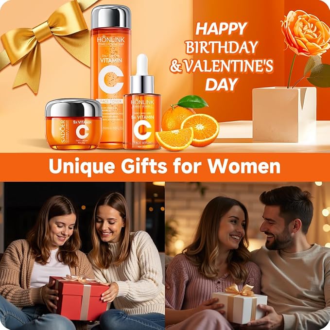 5x Vitamin C Skincare Set,Revitalizing Toner, Nourishing Essence, Face Moisturizer, Deep Cleansing & Hydration Balance, Refines Pores & Enhances Luminosity, Unique Gift for Women