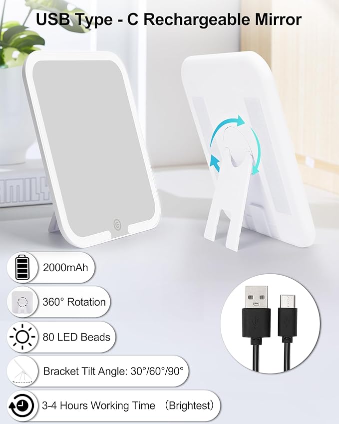 - USB Rechargeable Makeup Mirror: New generation makeup case design with LED makeup mirror, with cold white / natural / warm three-tone settings, and the brightness can be adjusted 0%-100%, which can perfectly meet your different makeup needs and make your makeup more delicate.
