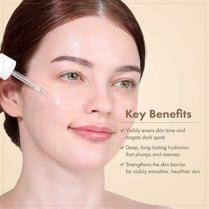- A daily serum with 80% rice bran water, alpha-arbutin, and niacinamide that helps visibly reduce dark spots, discoloration. It hydrates dull, uneven skin while refining tone, enhancing radiance, and improving overall clarity and texture.