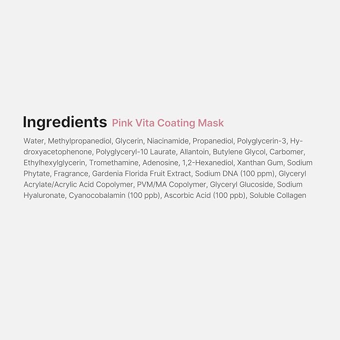 - PDRN Vita Coating Mask: Unlike our gel-type overnight mask, this sheet mask is designed for a quick 10–20 minute use—perfect for both morning and night routines.