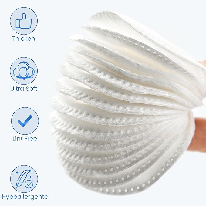 - Lint-Free & Super Absorbent: Designed as lint-free and super absorbent, our toner pad ensures efficient application of facial toner and creams. These face pads are allowing for optimal absorption without leaving cotton wadding during makeup removal
