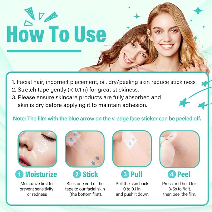 - All-Day Hold, Long-Lasting Adhesion --- Keep your look fresh for hours with Face Lift Tape Invisible. Designed for secure hold, this face tape and neck tape lifting invisible stays put for up to 8 hours—perfect for long days or nights out. No slipping, no readjusting. Just a seamless, lifted look that holds from morning to night