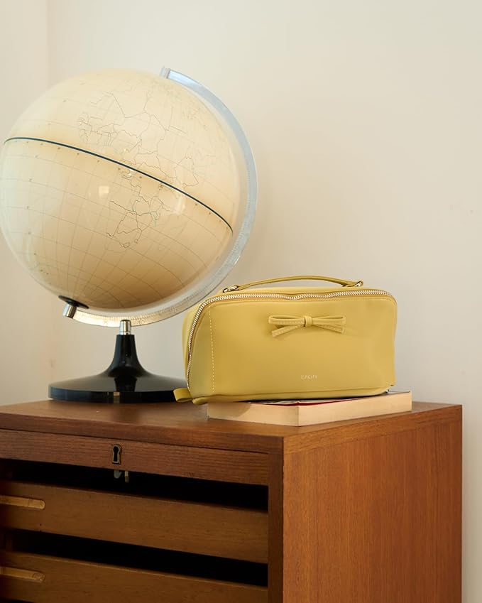 • Elegant Pearl-Sheen Materials: Made from waterproof PU with a silky pearl-like sheen that’s smooth to the touch and easy to clean, paired with a durable polyester lining. The clear, waterproof brush compartment keeps your tools tidy and visible, making it a stylish and reliable toiletry bag.