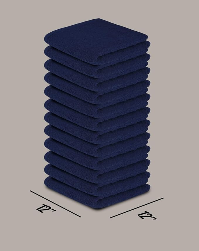 - PERFECT SIZE, BULK PACK WASHCLOTHS- There are 24 pieces of Navy Blue/ Grey towels, high quality wash clothes in the pack which measure 12x12 inches.