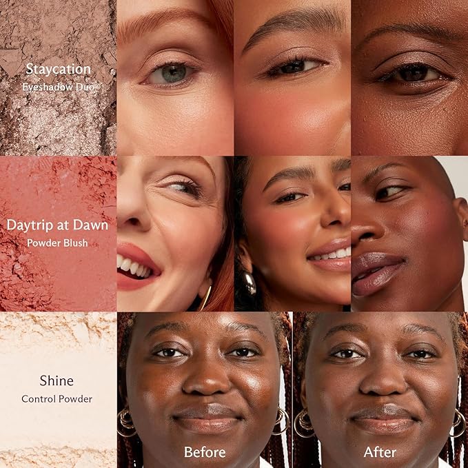 - ⭐️ 6-IN-1 TRAVEL MAKEUP KIT: A complete, portable routine in the palm of your hand. Includes our best-selling eyeshadow duo, lip glaze, cream highlighter, lip & cheek, powder blush, and shine control powder—plus a travel mirror + brush.