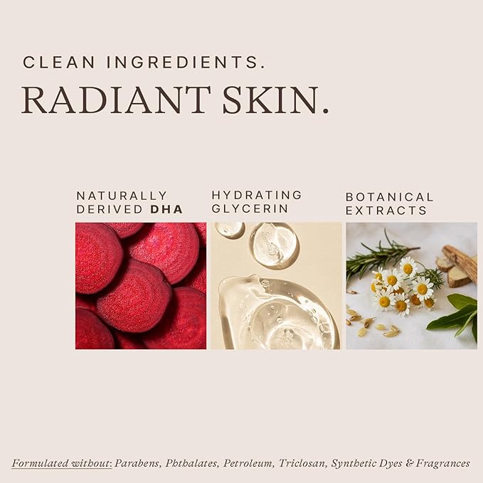 - CLEAN, VEGAN & MADE IN USA: Our clean self tanner is made with ๐ง๐๐ญ๐ฎ๐ซ๐๐ฅ ๐ญ๐๐ง๐ง๐ข๐ง๐ ๐๐๐ญ๐ข๐ฏ๐๐ฌ, free from toxins and harsh chemicals. Vegan, cruelty-free, and proudly made in the USA.