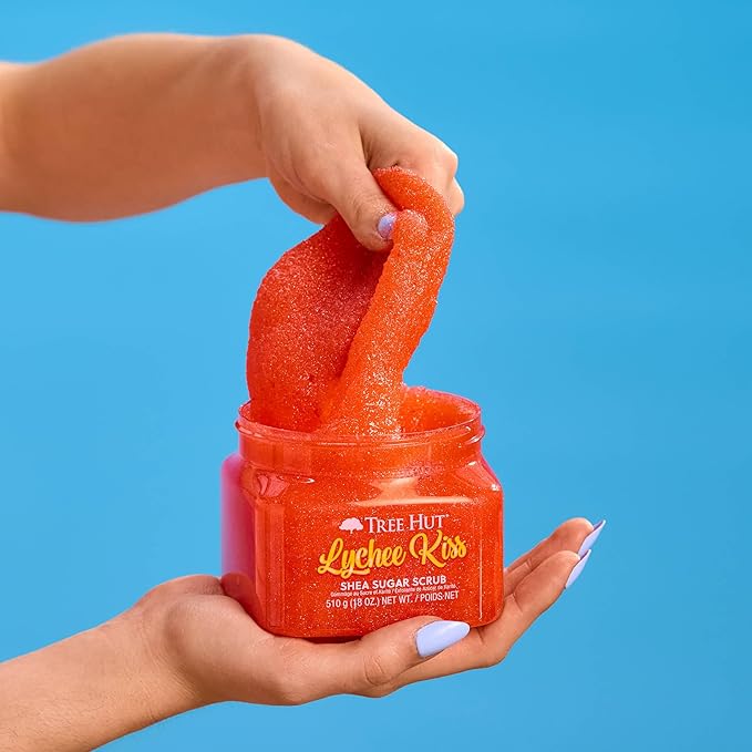 Tree Hut Lychee Kiss Shea Sugar Scrub, Exfoliating, Hydrating & Moisturizing Body Scrub with Shea Butter & Nourishing Essential Oils, Smooth & Soften Skin, 18 oz