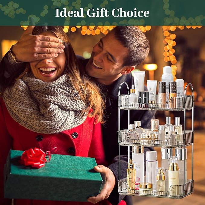 Aveniee Bathroom Counter Organizer, 3 Tier Perfume Skin Care Countertop Storage Shelf, Vanity Makeup Tray for Cosmetic Skincare Lotion,Grey