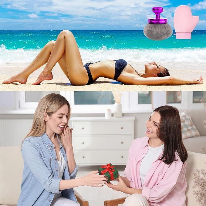 - 【Makeup Brushes Set】Composed of 1 extra-large body makeup brush and a self-tanning mitt. This combination of 2 beauty tools helps to blend foundation or self-tanner quickly, evenly and effortlessly, leaving the skin flawless.
