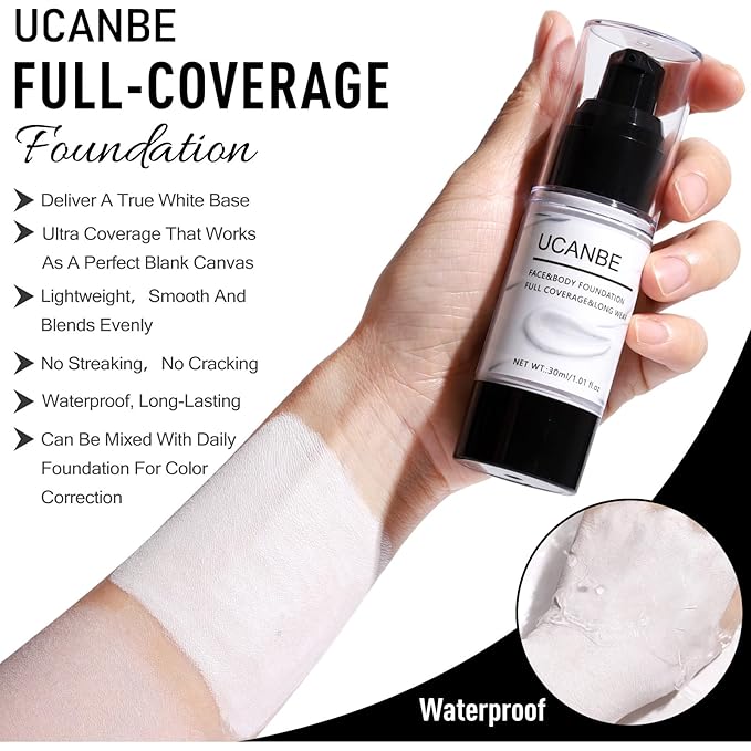 - EYESHADOW PALETTE & FOUNDATION- This richly pigmented eyeshadow includes 15 shades in a haunting mix of blood red, deep burgundy, brick, black, white, silver, and glitter finishes. With a balance of matte, satin, shimmer, and pressed glitter textures for creating bold and intense looks .This full-coverage foundation designed to deliver a true white base, offers smooth, opaque coverage that works as a perfect blank canvas for any Halloween character makeup. Lightweight and blends evenly without streaking or cracking, provide costume-grade white skin effect.