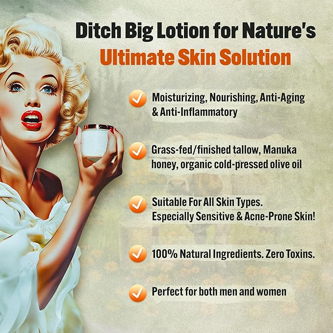- Crafted for Everyday Care – Whipped blend of beef tallow and honey balm, designed to nourish and moisturize skin on the face, body, and lips.