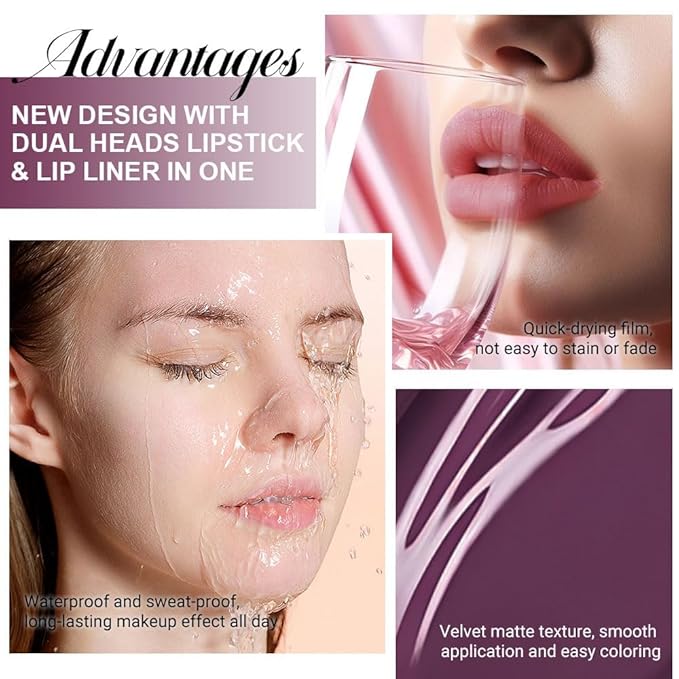 - 【2 IN 1 Lip Liner & Liquid Lipstick】The double ended design made you can use lipstick and lip liner on both ends. New design with dual heads lipstick & lip liner in one, for draw delicate lip line before applying lipstick. It combines lip line and liquid lipstick and makes double-end lipstick more perfect,meets the need of all occasions