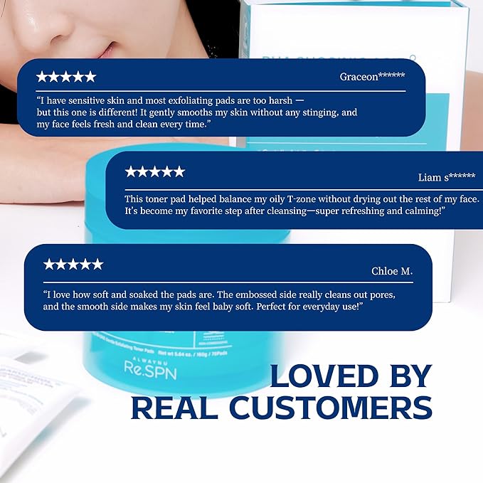 Re.SPN PHA Succinic Acid Calming Toner Pads – Daily Exfoliating, Hydrating and Soothing with CICA, Caffeine, Non-comedogenic, Vegan, Glass Skin, K-Beauty (35)