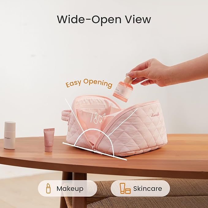 - 【180° Lay-Flat Design】:LOVEVOOK spacious large makeup bag for women opens fully to a 180° lay-flat design, featuring 5 dedicated compartments to store all makeup and skincare essentials. Store 5+ brushes, 200ml toners, eyeshadow palettes, and full skincare routines. The wide-open view ensures quick access to all essentials, making it the ultimate makeup organizer for travel or daily use.