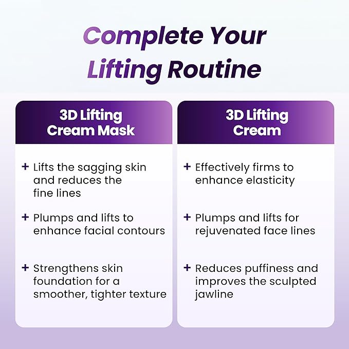 - [DOUBLE-ACTION SKINCARE SET] Includes full-size 3D Lifting Cream + 2 Lifting Sheet Masks for synergistic lifting results—perfect for daily care and special skin pampering moments.