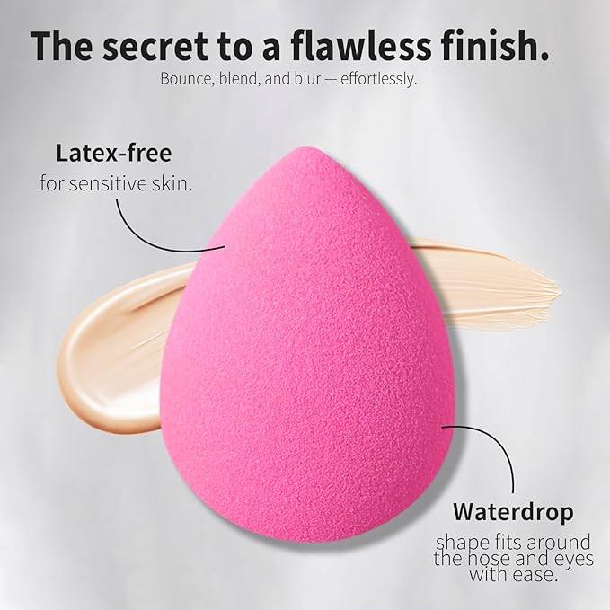- High-Performance Teardrop Sponges: 2 PCS Makeup Blenders for precise eye/nose detailing & large-area blending. Latex-free, non-absorbent, super soft. Wet/dry use for seamless makeup finish
