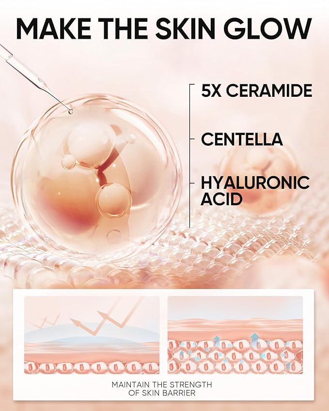 - SKINCARE INGREDIENTS: Enriched with 5X Ceramide, Centella & Hyaluronic Acid to nourish and strengthen the skin barrier.