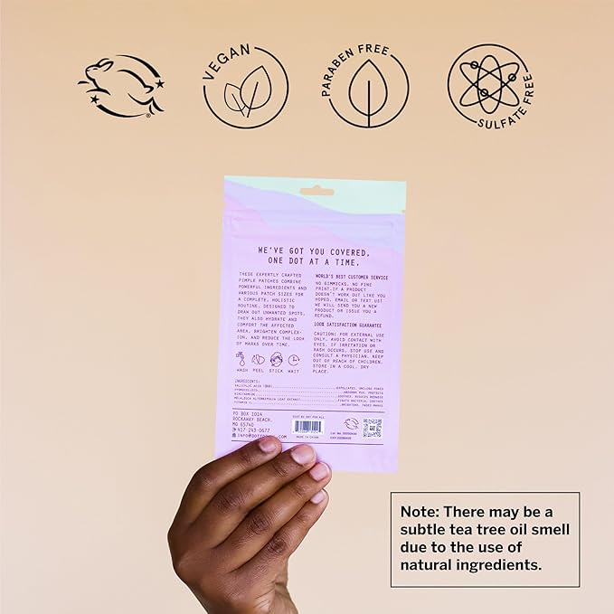 - HYDROCOLLOID PIMPLE PATCHES: Dot Pimple Patches come in a 80 ct bundle (2 packs of 40) each 10mm, to draw out unwanted spots. Made with natural ingredients, they have a refreshing tea tree oil scent.