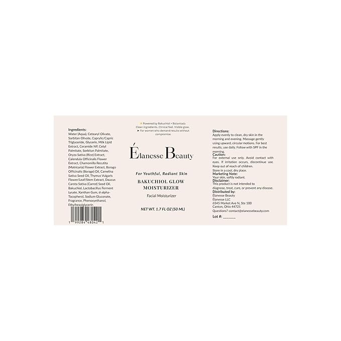 - Thoughtful details – Glass pump bottle; use 1–2 pumps on clean, dry skin morning and night. Distributed by Élanesse Beauty, Canton, OH.