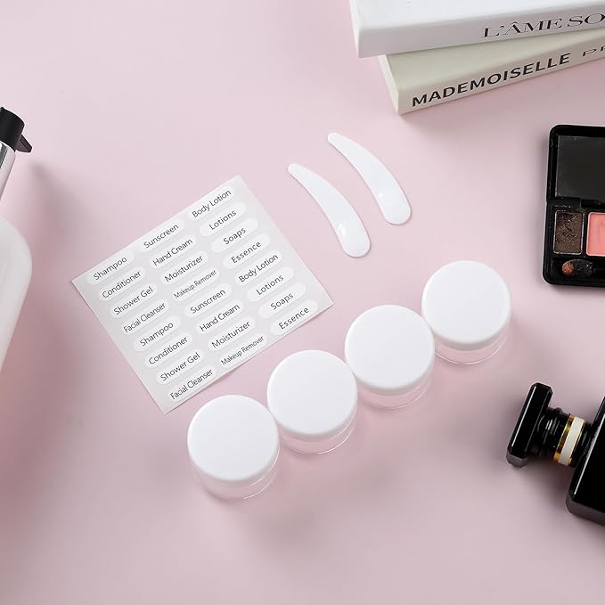 - Useful Travel Accessories: This is a oversize assortment of travel containers in a useful zip case. ( Come in 2 pcs Larege 6oz & 2pcs 3oz Travel Bottles + 4 Travel Jar s+ 2 Spray Bottles + 2 Scoopers + 1 Funnel + 1 Clean Brush + 1 Page Label + 1 Clear Toiletry Bag ) Multiple ones allow you take along different beauty products and toiletries according to your requirement