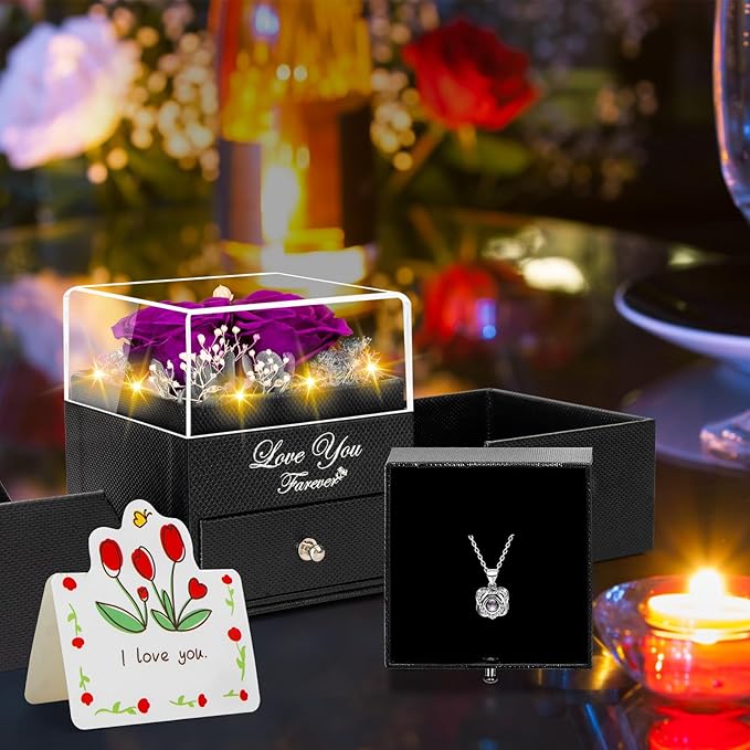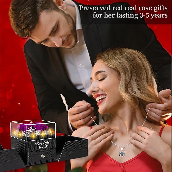 - โ [Package & Service] Premium packaging: a Gift box + a storage bag + a personalised greeting card. Each necklace is individually packaged in plastic bags to avoid scratches, and each rose is carefully Quality-checked. Storage tip: Avoid sunlight/ Humidity to extend lifespan. Ideal last-minute gifts for mum or girlfriend birthday presents. If you have any questions, please feel free to contact us.