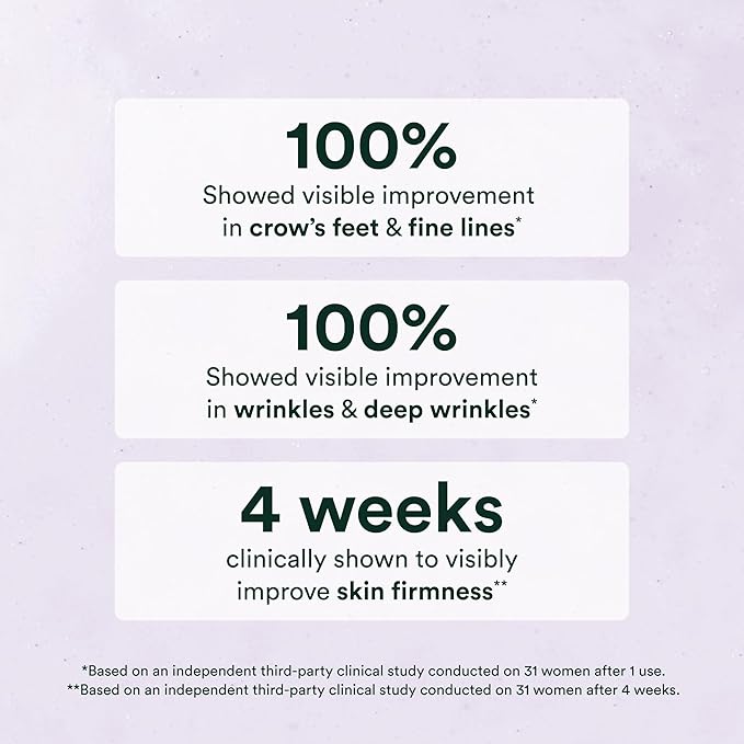 - Plant-Based Retinol – Algae-derived bio-retinol and two firming peptides deliver retinol-like results without dryness, redness, or irritation, making it perfect for sensitive skin.