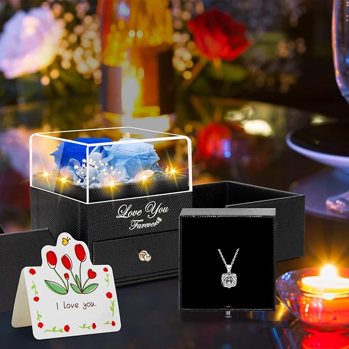 - โ [Package & Service] Premium packaging: a Gift box + a storage bag + a personalised greeting card. Each necklace is individually packaged in plastic bags to avoid scratches, and each rose is carefully Quality-checked. Storage tip: Avoid sunlight/ Humidity to extend lifespan. Ideal last-minute gifts for mum or girlfriend birthday presents. If you have any questions, please feel free to contact us.