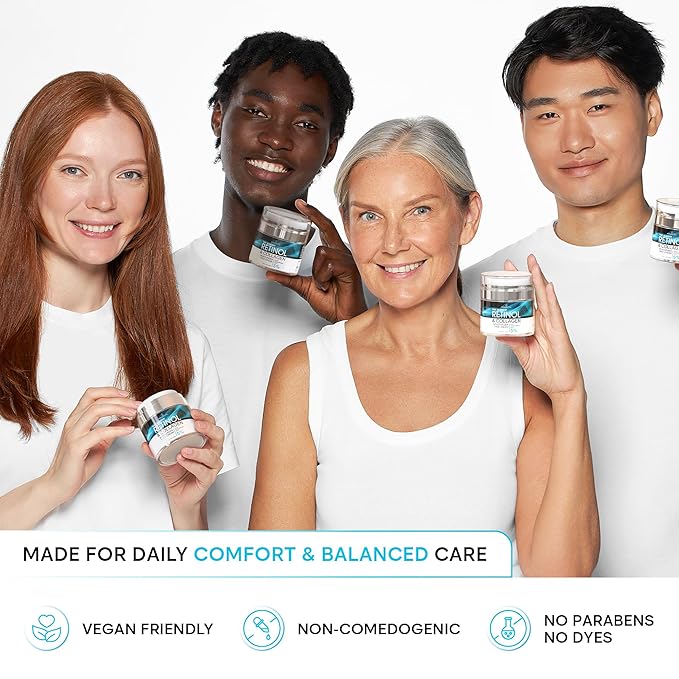 - For All Skin Types and Ages: Starting retinol in your 20s and beyond is essential to prevent early skin aging; our face moisturizer for women & men is suitable for all skin types and ages for your youthful look