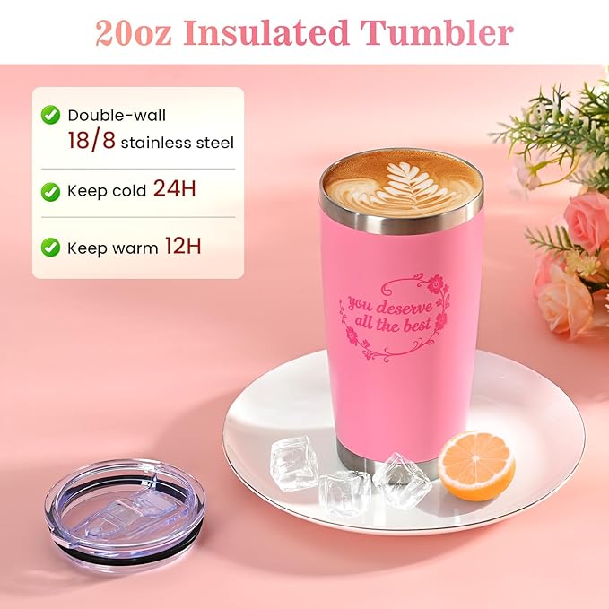 - 【Luxury 10-piece set】:This women's birthday gift basket includes 10 elegantly packaged premium gifts: 1 luxurious flannel blanket, 1 20-ounce insulated stainless steel thermos, 1 peach-scented aromatherapy candle (4 ounces), 1 pair of plush socks, 1 silk eye mask, 1 bath ball, 1 crystal soap, 1 hairband, 1 blank greeting card, and 1 beautifully handcrafted flower.