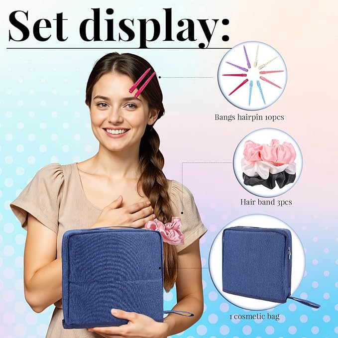 - ๐ [All-in-One Gift Set for Beauty Lovers] Includes a spacious standing makeup bag, 3 smooth silk scrunchies (black, white, pink), and 10 colorful duckbill hair clips. A perfect gift for women, girls, teens, or new moms who love staying organized and stylish.