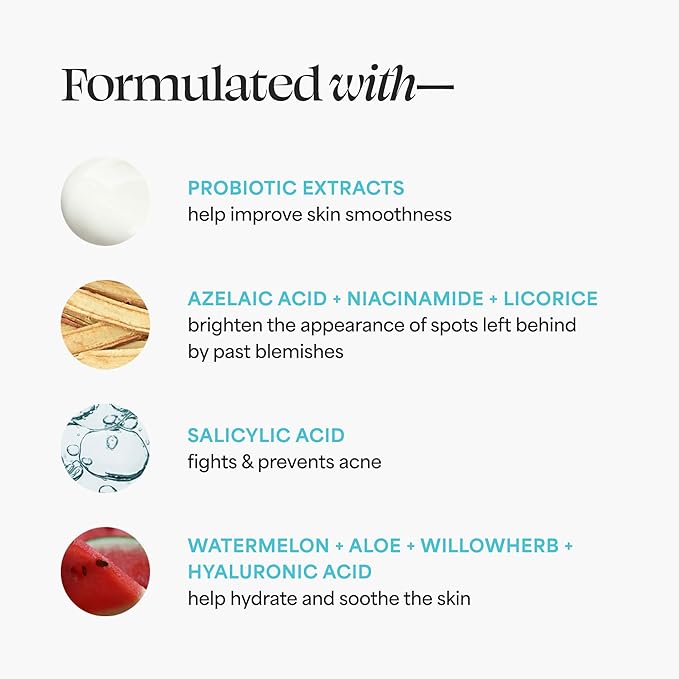 - Special Ingredients : probiotic extracts, salicylic acid, azelaic acid + niacinamide + licorice, watermelon + aloe + willowherb + hyaluronic acid probiotic extracts, salicylic acid, azelaic acid + niacinamide + licorice, watermelon + aloe + willowherb + hyaluronic acid