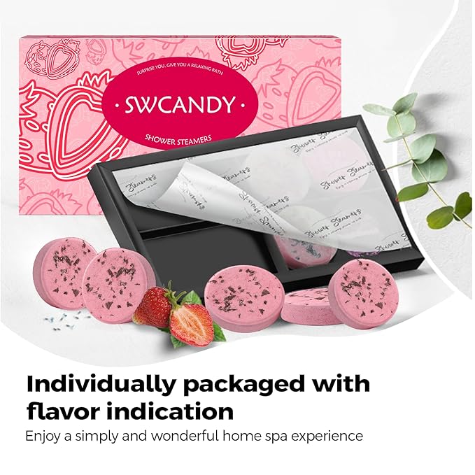 Shower Steamers Aromatherapy Birthday Gifts for Women - SWCANDY 8 Pcs Stocking Stuffers Gifts for Adults Mom Men Teen Self Care with Natural Essential Oils Relaxation Home SPA Christmas Strawberry
