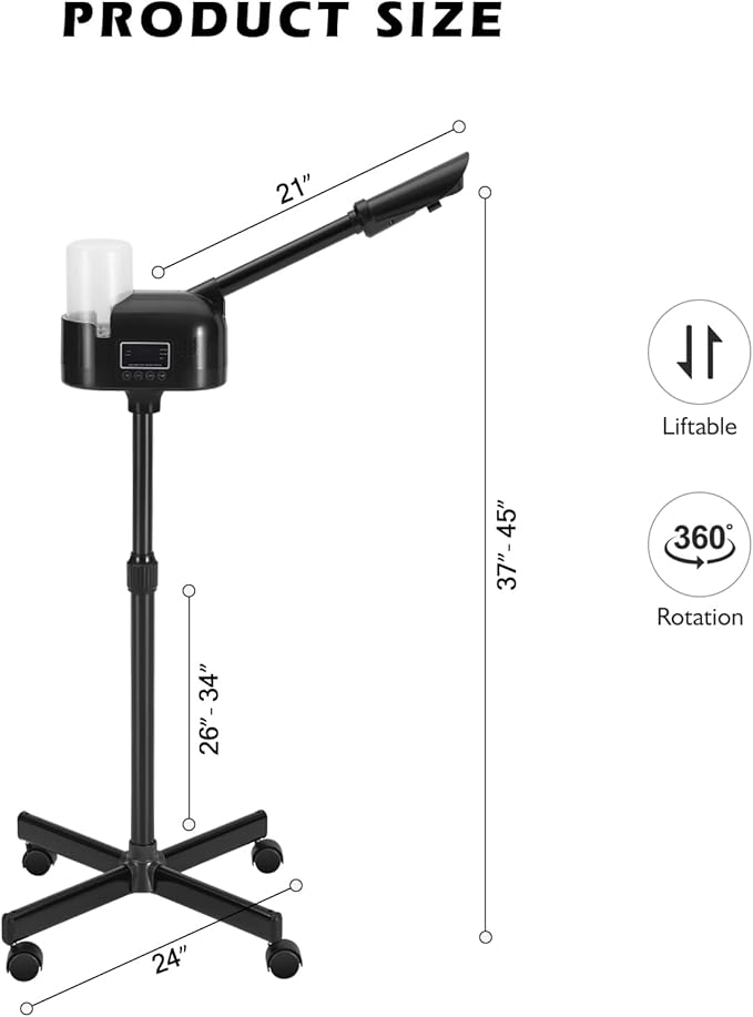 - 【Adjustable Arm & Spray Nozzle】Beard steamer for men Easily direct steam where you want it. With its swiveling spray arm and adjustable height, it's perfect for both barbershop customers and spa beds