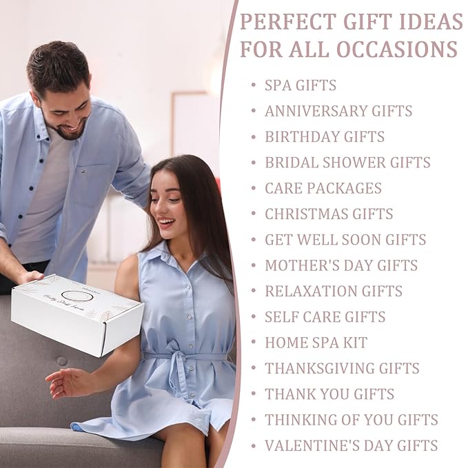 - The Perfect Gift for Her: Thoughtfully curated for moms, wives, best friends, this spa gift basket makes an unforgettable present. Whether for Christmas, Valentine's Day, Birthday, Bridal Shower or just because, the elegant packaging elevates it to a luxury spa set for women. A wonderful care package for women recovering from illness or stress too