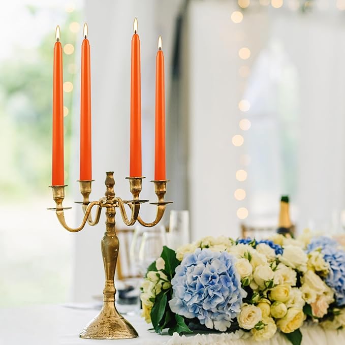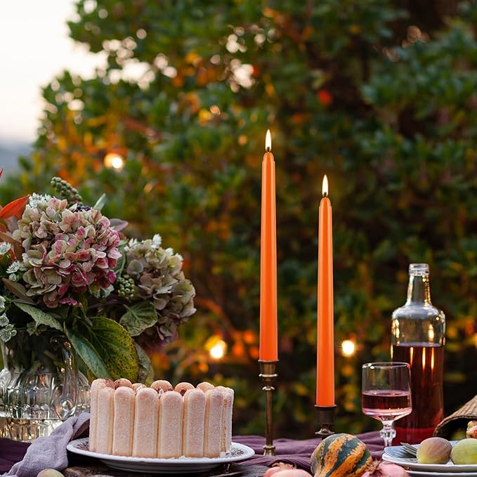 10 Inch Orange Slender Taper Candles Set - 12 Pcs Dripless, Smokeless with Cotton Wick, Ideal for Halloween,Thanksgiving,Dinner, Weddings & Home Decor.