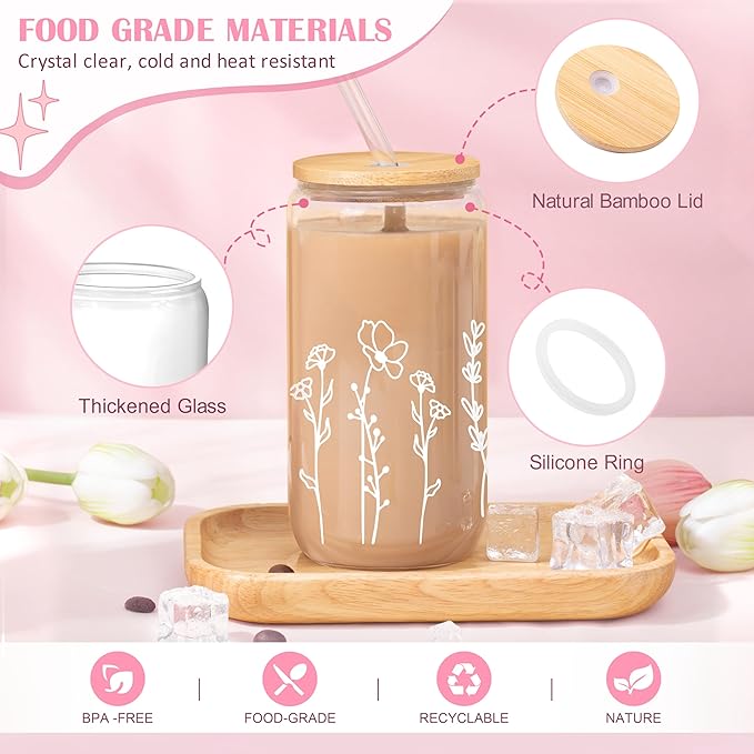 - 【UNIQUE BIRTHDAY GIFTS FOR WOMEN】 Enclosed in our elegant gift box, this "sending hug" gift set. The set includes a 16oz glass cup with a lid and straw, a 3.5oz lavender candle, a 2.6oz handmade oatmeal & rose soap, a 2.1oz bath bomb, fuzzy socks, a greeting card, a handmade knitted tulip-shaped potted ornament, an eye mask, a keychain, a hair scrunchie, and the gift box itself.