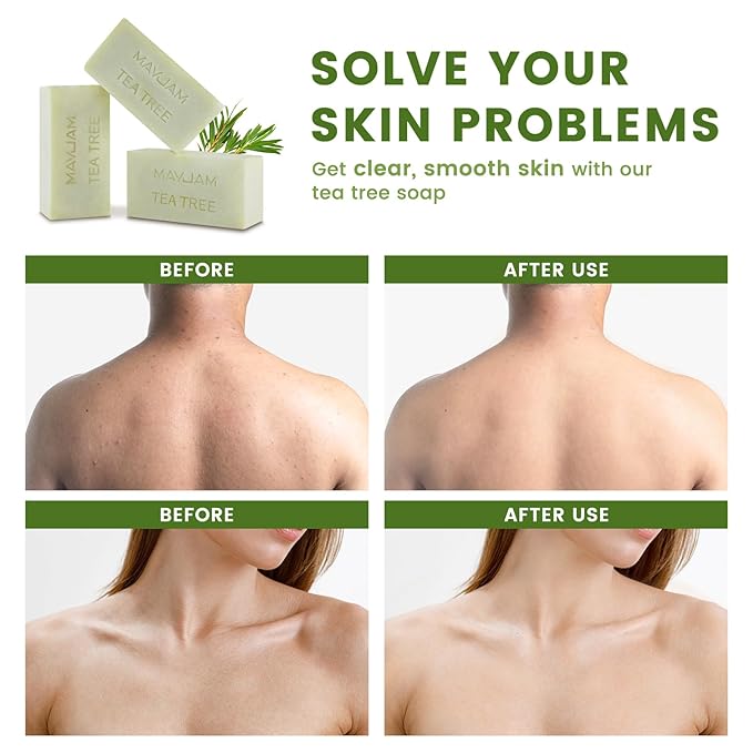 - Deeply Cleansing & Purifying Formula: MAYJAM tea tree soap is infused with natural Tea Tree oil, renowned for its powerful cleansing properties. This formula works to deeply clean your skin, washing away dirt, excess oil, and impurities without over-drying, leaving your skin feeling thoroughly refreshed and revitalized. The natural ingredients in the product make our tea tree soap ideal for Antifungal Antibacterial Treatment for face & body acne, athlete's foot, tinea, folliculitis ringworm, jock itch, ect.
