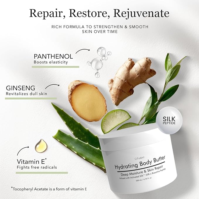 - 🧴【Rich Repair Blend】With Vitamin E, Panthenol, Ginseng and Activated Silk 33B -α Bioactive Peptide our organic body butter formula helps improve elasticity, reduce flakiness, and defend skin from environmental stressors, making it a perfect body butter for men.