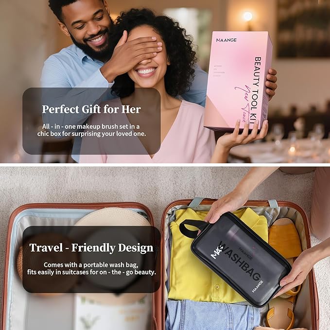 - MULTIPLE STORAGE OPTIONS: This makeup brush set comes with both a brush case and a toiletry bag. Enough for all makeup kits, providing you with a variety of carrying options, perfect for travel or daily use. Keep Your Brochas De Maquillaje, powder sponges and other makeup tools neatly organized.