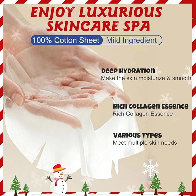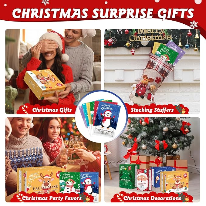 - Stocking Stuffers for Women:These Christmas face masks skincare are excellent stocking stuffers,whether it's stuffing them into Christmas stockings or giving them to friends,family or women,they are all ideal Christmas gifts.Sharing these facial mask with friends will leave them a good memory