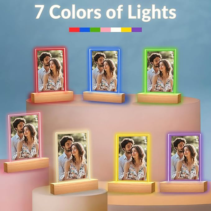 - Offer A Variety of Choices: Personalized acrylic picture frame can be designed in a variety of shapes and sizes, giving you the flexibility to choose how photos are displayed. You can choose between independent acrylic blocks, three colored small nightlight wooden shelves and seven colored small nightlight wooden shelves to meet your needs.