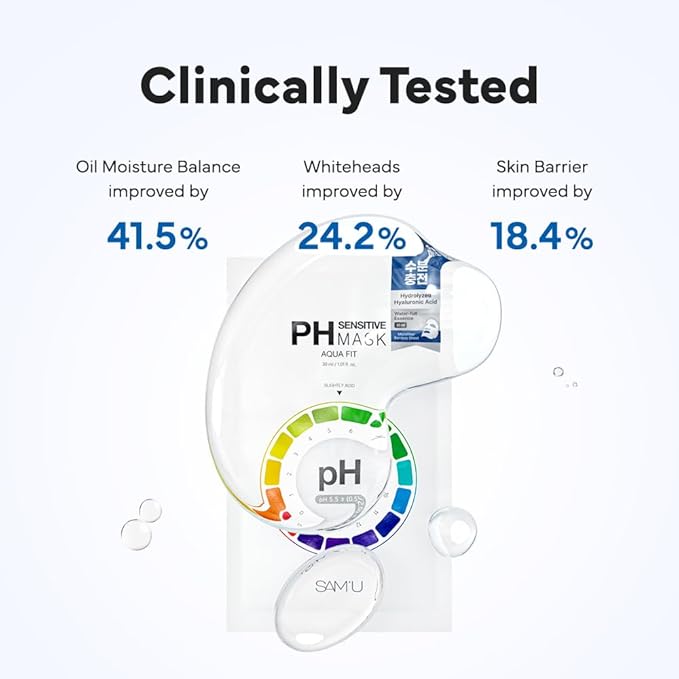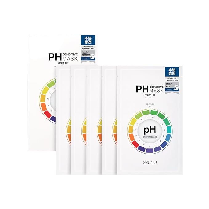 SAM’U PH Sensitive Aqua Fit Face Mask – Hydrating & Soothing Vegan Sheet Mask with Hyaluronic Acid and Panthenol, Bamboo Fiber, Travel-Friendly Korean Skincare (5 Sheets)