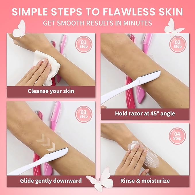 - 1. Gentle & Precise – Perfect for shaping eyebrows and removing fine facial hair. 2. Dermaplaning Tool – Exfoliates and smooths skin for better skincare absorption. 3. Travel-Friendly & Disposable – Lightweight, easy to use anytime, anywhere. 4. Safe for All Skin Types – Designed to minimize irritation and redness. 5. Value Pack of 12 – More razors, more convenience, better value.