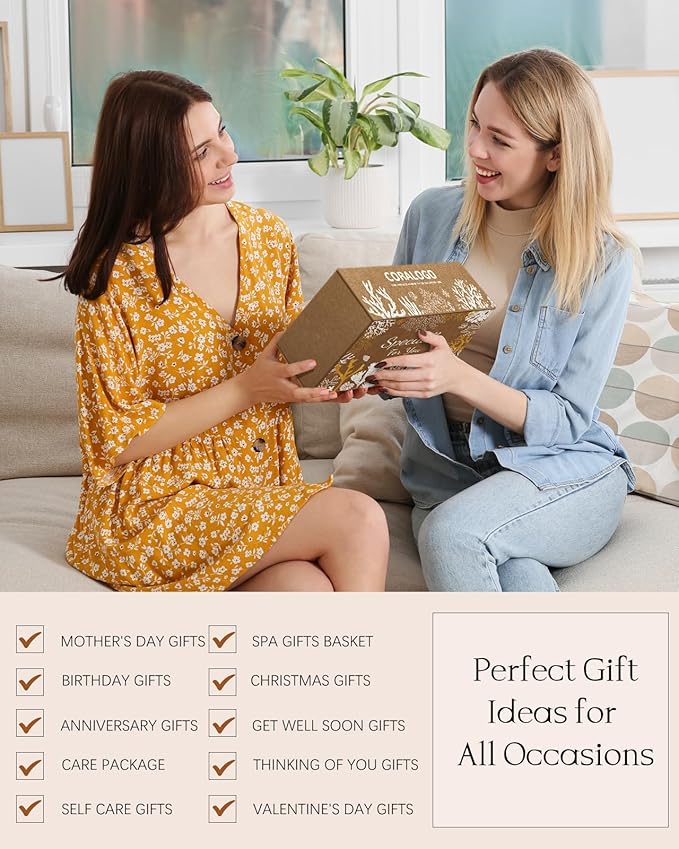 Coralogo Natural Spa Gift Baskets - Natural Pampering Spa Set, Self-Care Beauty Gift Basket, Wellness Bath & Body Works, Unique Gifts for Birthday, Valentines Day, Mothers Day for Mom, Wife, Her